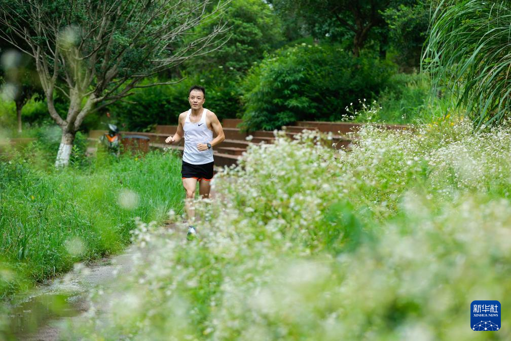 陈志刚在成都天府绿道上进行跑步训练(7月14日摄)。新华社记者 沈伯韩 摄