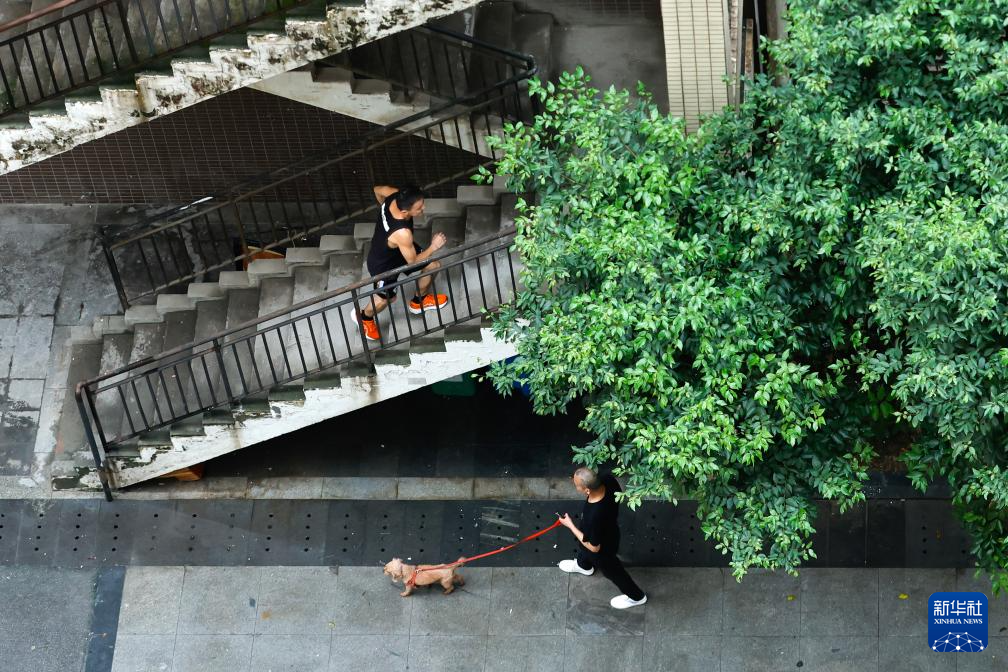 陈志刚在小区内进行爬楼梯练习(7月10日摄)。新华社记者 沈伯韩 摄