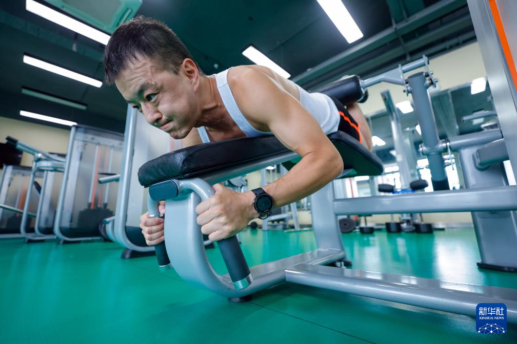 陈志刚在健身房进行力量训练(7月17日摄)。新华社记者 沈伯韩 摄