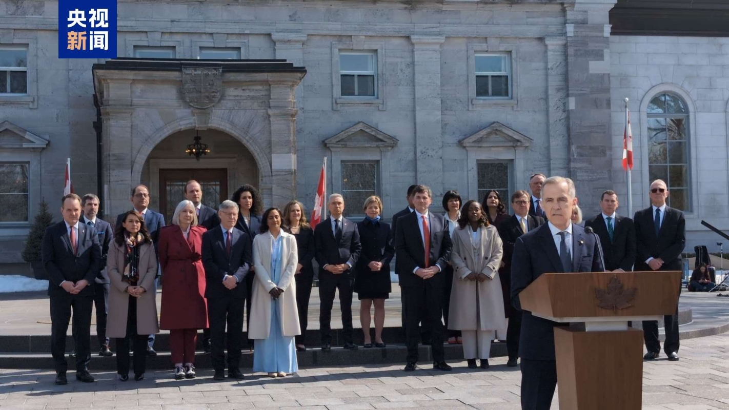 3月14日,完成宣誓就職儀式的馬克·卡尼帶領新內閣的成員,在總督府前舉行了首 次媒體見面會。央視新聞圖