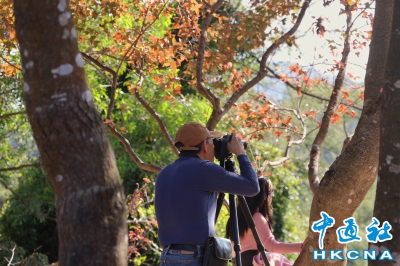 香港中通社1月11日電(記者鄧梓傑 梁嘉軒)香港特區政府漁農自然護理署11日舉行本年秋冬季後一天的楓香林自然導賞活動,吸引不少市民參與,在元朗大棠欣賞仍處佳觀賞期的紅葉。