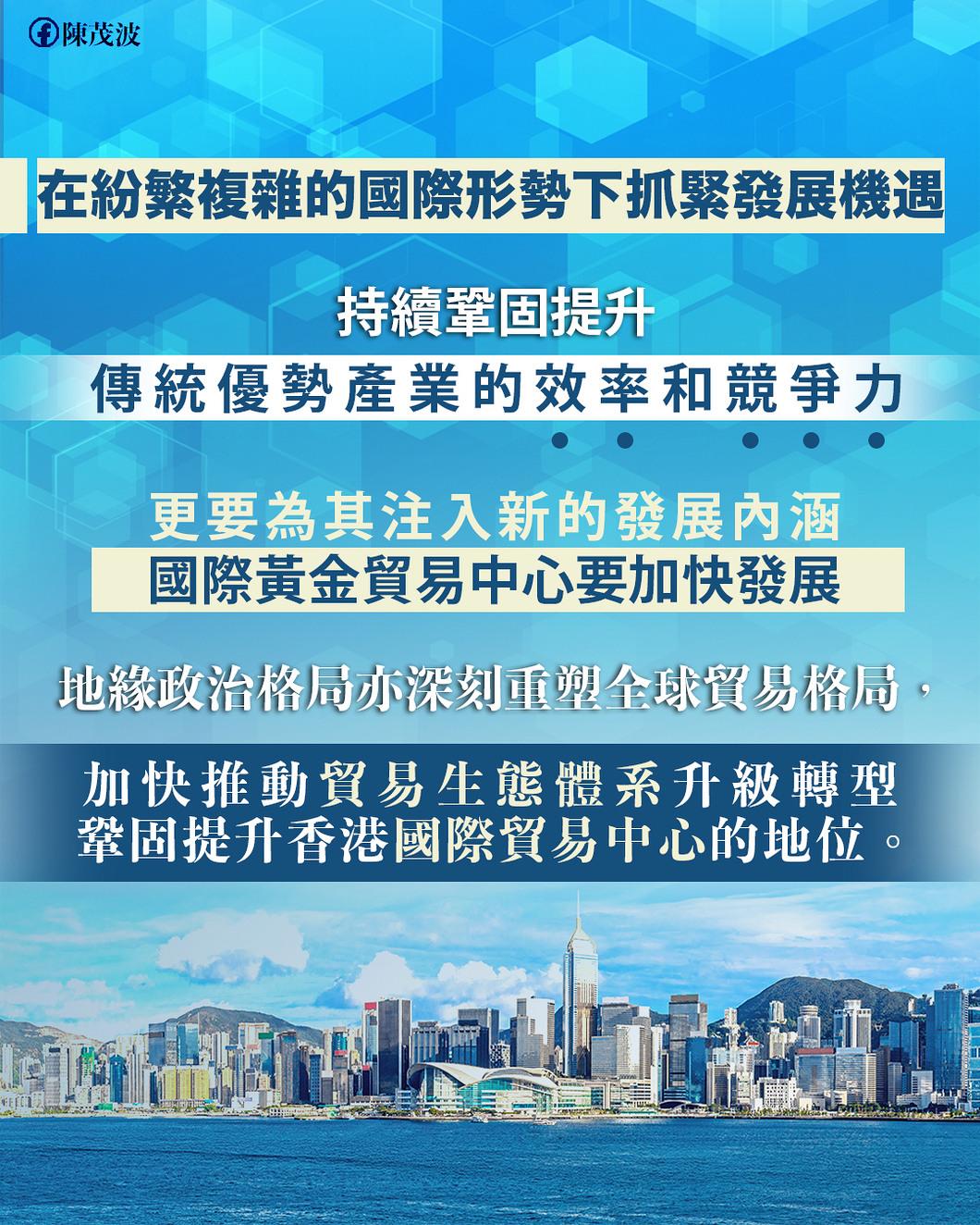 陳茂波指出,在特區政府和業界共同努力推動下,香港黃金現貨交易市場明顯更趨活躍,截至去年11月,香港黃金交易所九九金平均日均成交額按年大增超過兩倍,達29億港元,但目前香港黃金場外現貨交易,均需買賣雙方自行清算,造成不便,因此,香港正加緊推動建立黃金中央結算系統,作為重要金融基建,以提升香港黃金交易及實物交割的可靠性及效率,降低交易成本,以及增加其流動性。