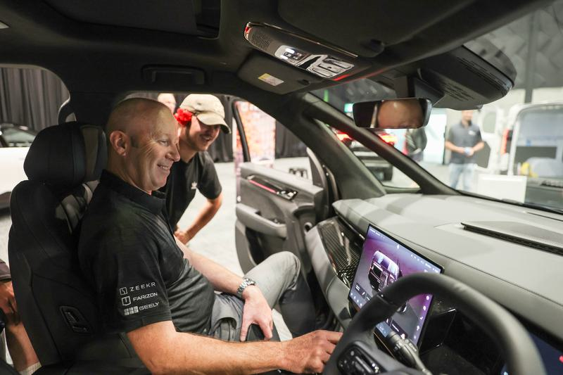資料圖:2025年11月1日,在新西蘭克賴斯特徹奇,工作人員在電動汽車展上講解極氪汽車。新華社照片