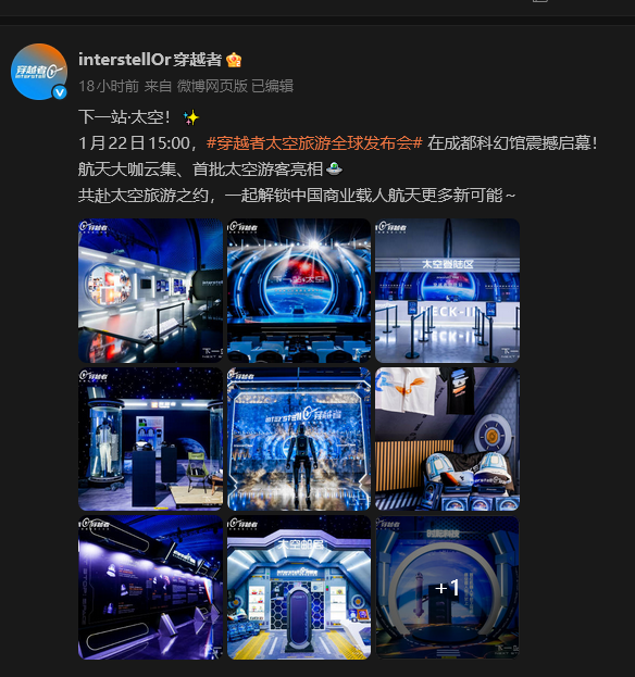 1月22日,北京穿越者載人航天科技有限公司(北京穿越者)在中國四川成都舉行“下一站,太空:穿越者太空旅遊全球發布會”。圖源:北京穿越者社媒賬號截圖