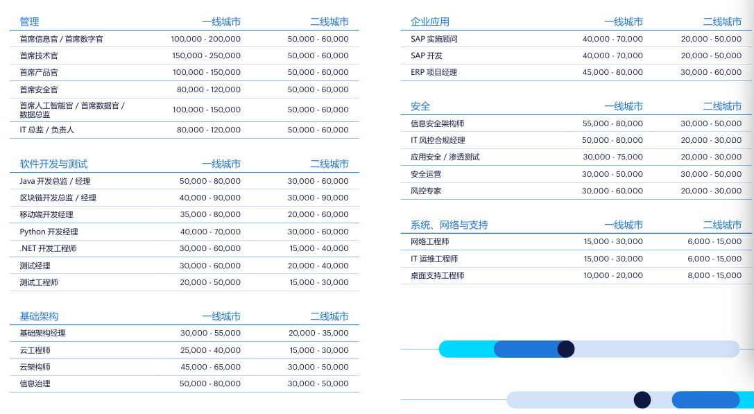 城市的劃分來源:國家統計局 • 薪酬表數據來自任仕達大中華目前的主要熱招職位,數據為基本月薪,不包含獎金、提成、補貼或其他福利等