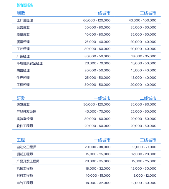 中國大陸智能製造與運營每月薪酬。(圖源:任仕達)