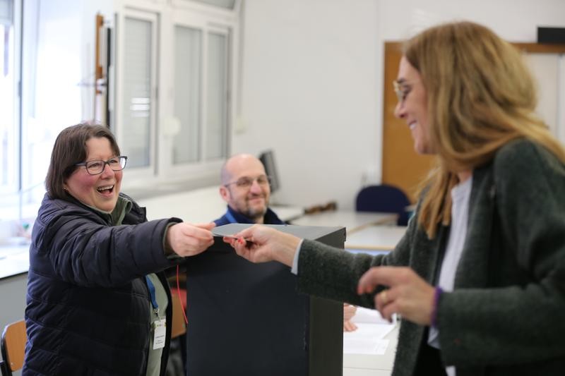 1月18日,選民在葡萄牙里斯本一處投票站參加總統選舉投票。圖片來源:新華社