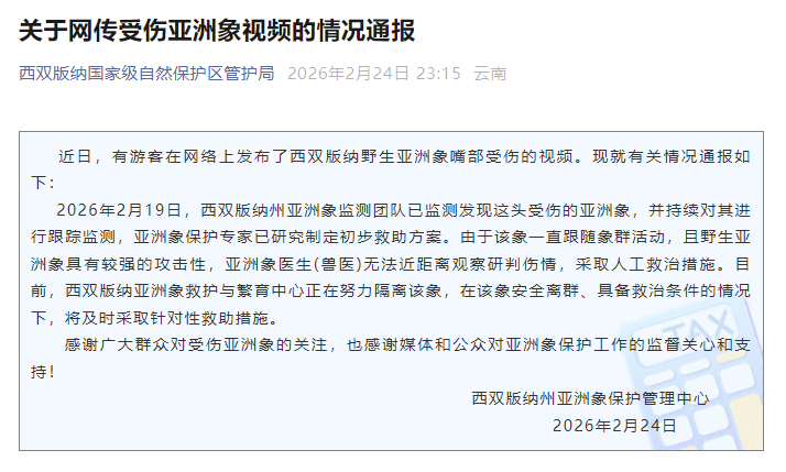 情況通報。圖源:“西雙版納國家級自然保護區管護局”公眾號截圖
