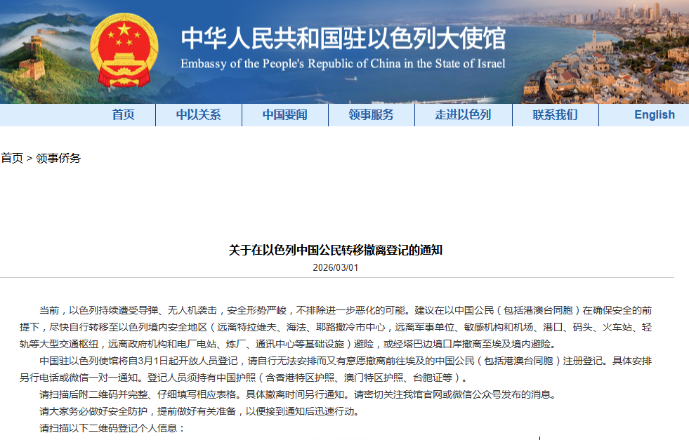 香港新聞網3月2日電(編輯 淩玉輝)近期中東局勢持續緊張,中國駐以色列使館於3月1日發佈關於中國公民轉移撤離登記的通知,明確持有台胞證的台灣同胞亦可參與登記。此舉展現了祖國大陸對包括台灣同胞在內的所有中國人的責任擔當與關懷,贏得了不少台灣民眾的認可與歡迎。
