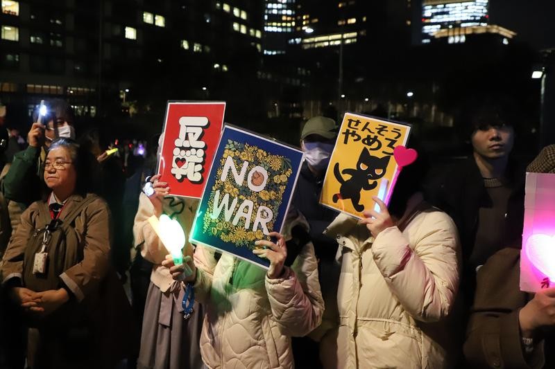 據報道,本次抗議集會以“反戰”為主題,組織方稱,約有1400人在線下參與了本次集會。抗議者們對美以襲擊伊朗、高市內閣推動修憲等表達了強烈不滿。他們喊出口號要求“高市下台”“保護(日本憲法)第9條”。