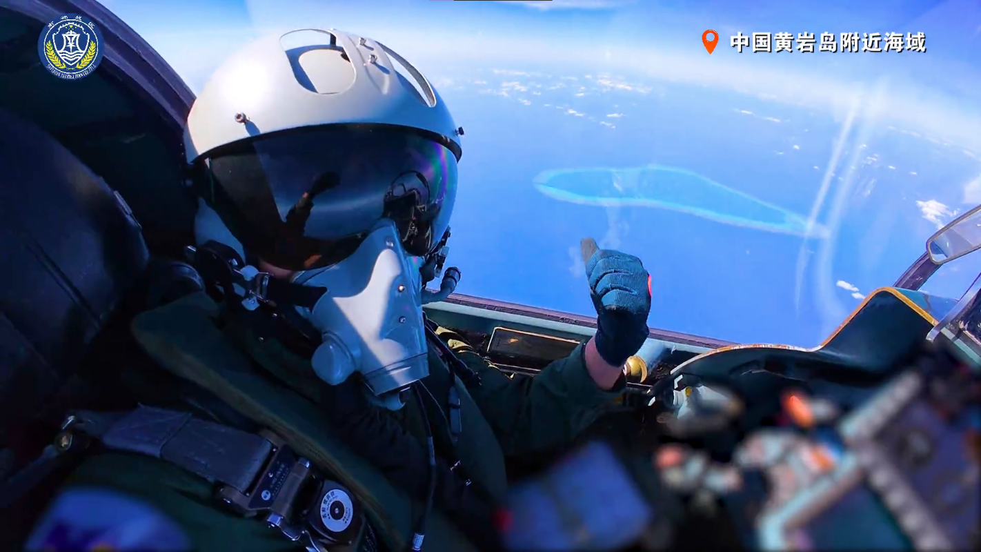 3月29日,中國人民解放軍南部戰區組織海空兵力位中國黃岩島領海領空及周邊海空域開展戰備警巡。圖源:南部戰區視頻截圖