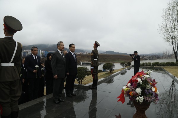 香港新聞網4月10日電 當地時間4月10日,正在朝鮮訪問的中國外交部長王毅專程前往平壤東部江東郡祭掃中國人民志願軍烈士陵園,深切緬懷犧牲在朝鮮的中國人民志願軍英烈。