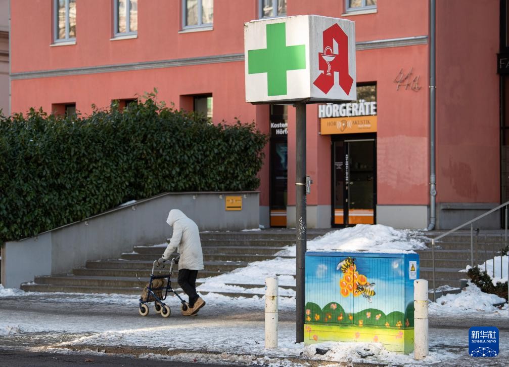 一名男子經過德國首都柏林的一家藥房。新華社圖片