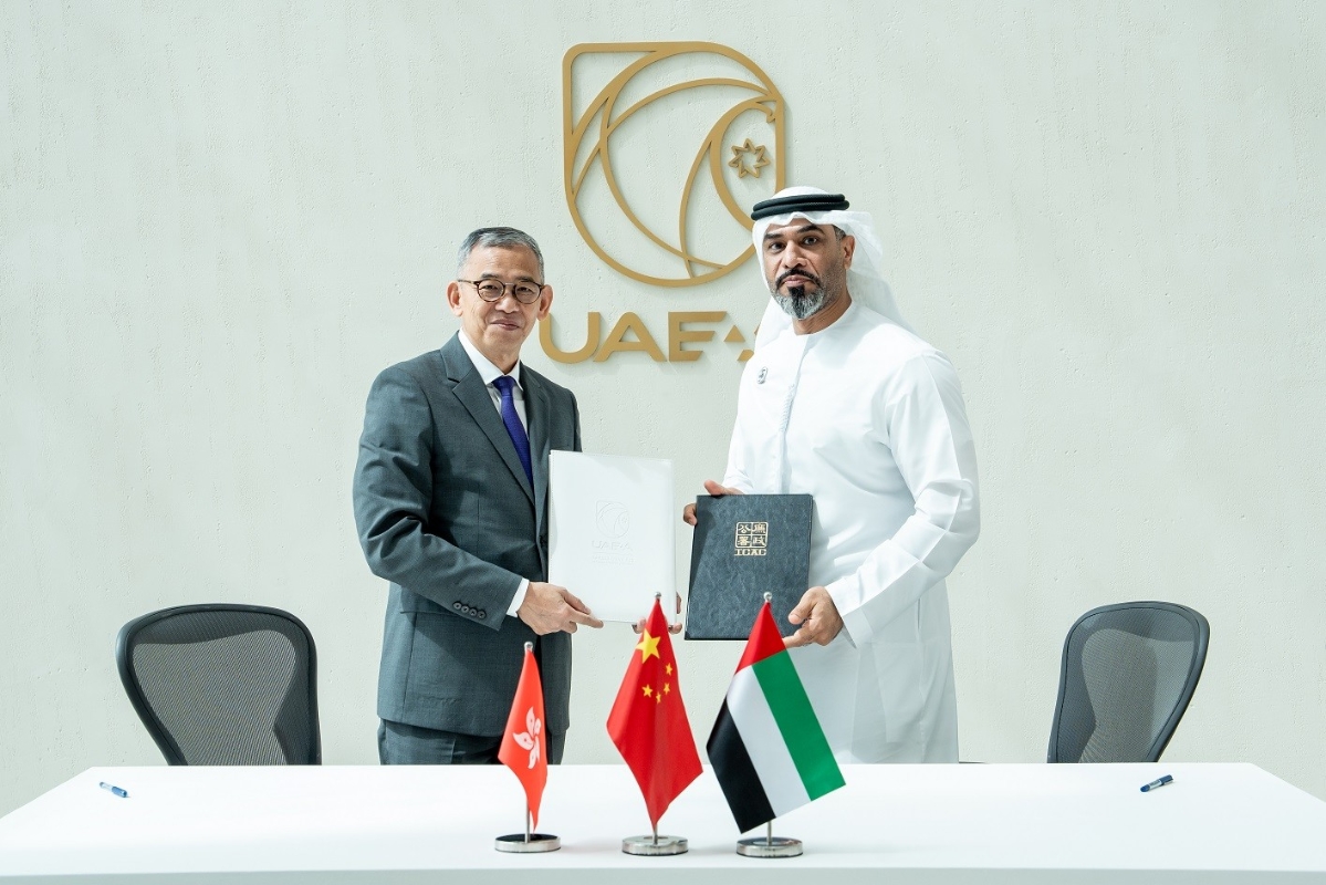 廉政專員胡英明(圖左)與阿拉伯聯合酋長國問責局主席H.E. Humaid Obaid Abushibs簽訂合作諒解備忘錄。圖片來源:香港廉政公署官網