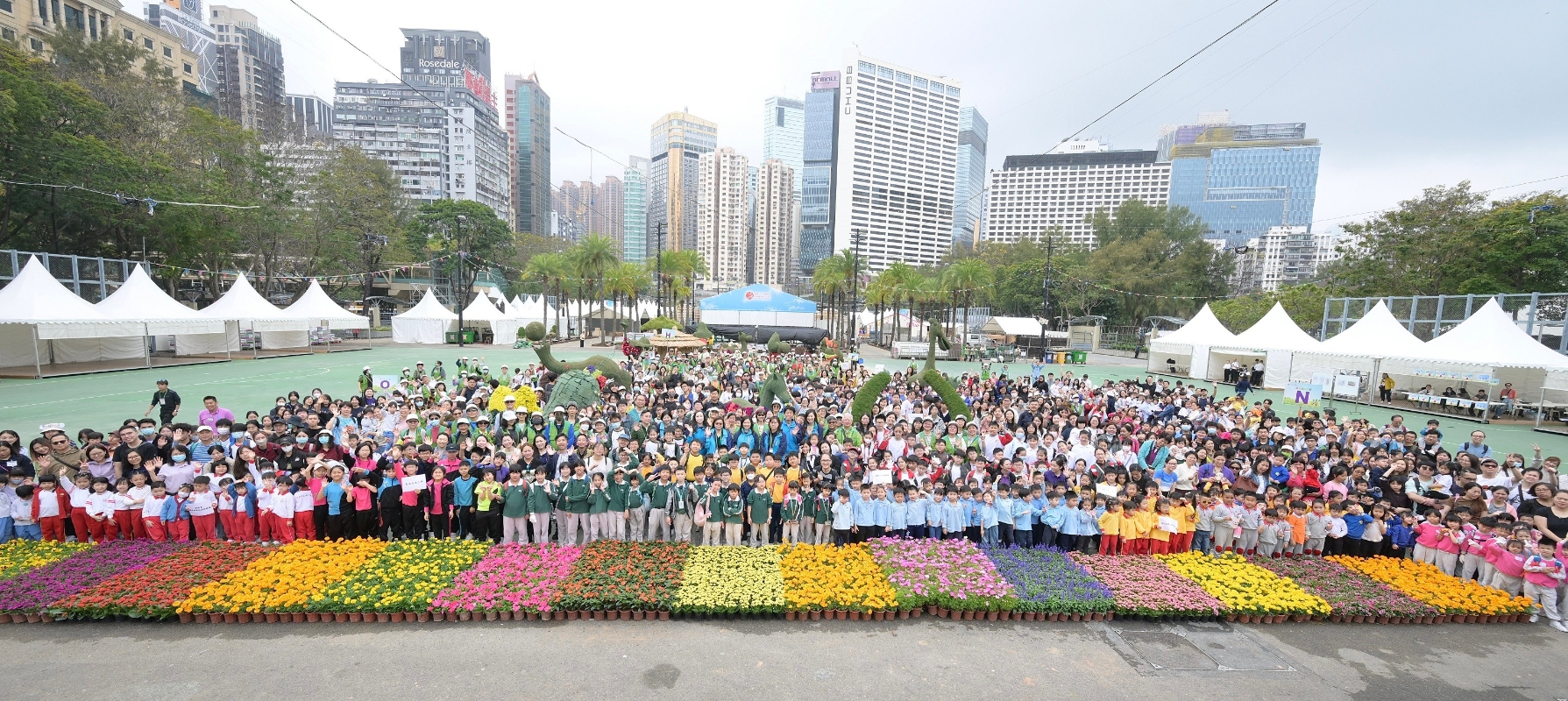 香港新聞網3月1日電 超過1100名來自38間幼稚園、中小學和特殊學校的學生,3月1日於維多利亞公園(維園)參與“賽馬會學童鑲嵌花壇”活動,在約140名綠化義工指導下,協助鑲嵌大型花壇“非洲獵奇”。花壇為即將舉行的香港花卉展覽(花展)的主要特色景點之一。