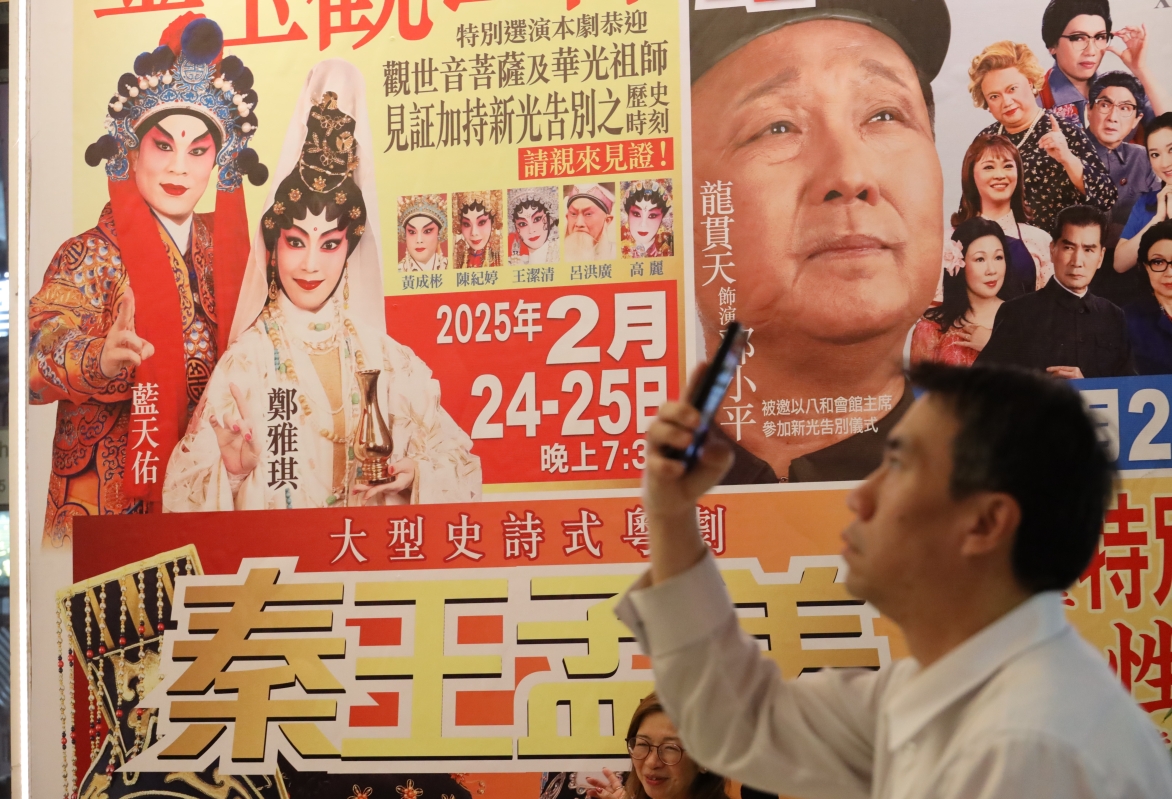 連日來,香港北角新光戲院有大批市民和戲迷聚集在結業前拍照,緬懷昔日粵劇殿堂光輝歲月。
