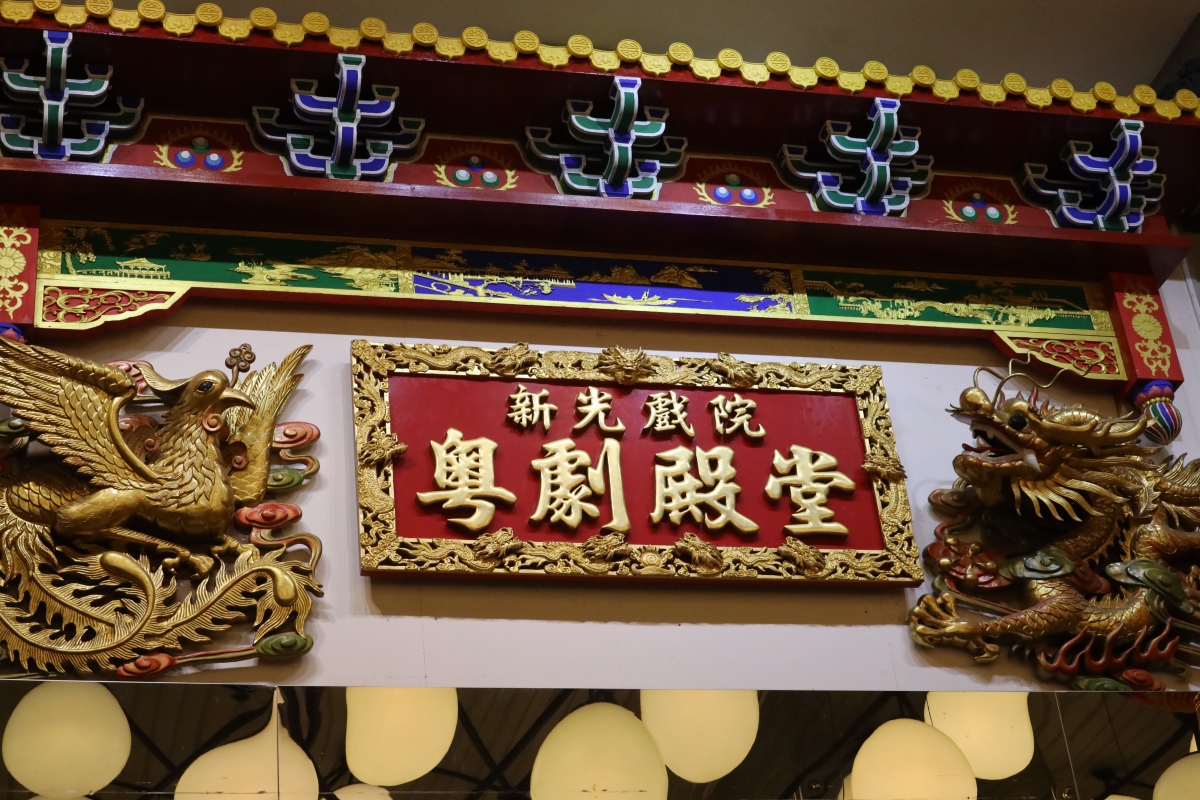 香港新光戲院的醒目牌匾“粵劇殿堂”。