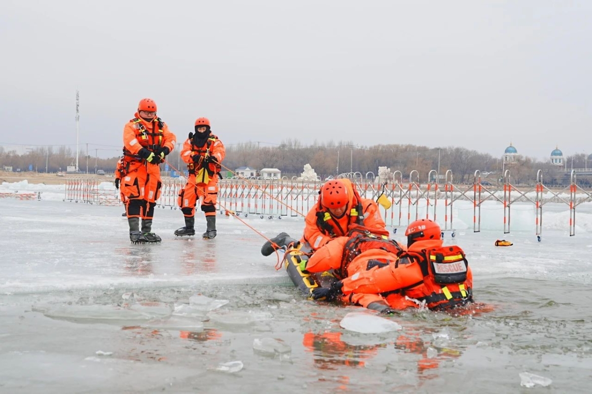 演練過程中,救援人員按照冰域救援個人防護裝備配備要求著裝,著重對拋投救援、提拉式救生圈救援、單杠梯救援、落水自救、車輛墜冰救援、空氣動力船救援等9項科目開展演練;同時,組織對冰面救援服、乾式救援服、單杠梯、充氣船等器材裝備進行實戰效能測試。(完)