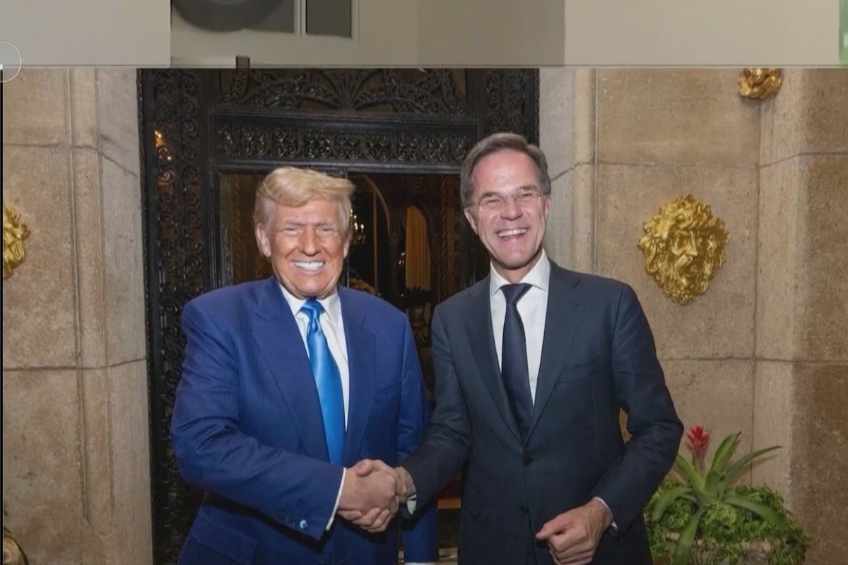 資料圖為美國總統特朗普和北約秘書長呂特。央視截圖