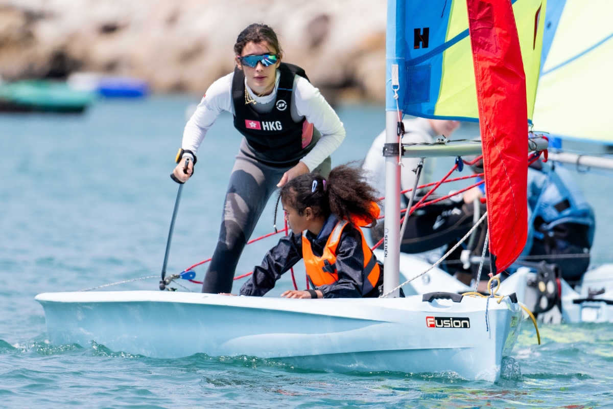 香港新聞網3月16日電 由香港遊艇會主辦,被喻為學界帆船賽的“校際帆船節”一連兩日(15及16日)假中途島水上運動訓練中心對出海域上演,今日(16日)圓滿落幕。經過72場循環賽,得分首 高的頭八名參賽隊伍分成金組及銀組進入決賽。排名一至四隊進入金組,第五至八隊則進入銀組。结束时,哈羅香港國際學校隊伍於金組以大熱姿態封王,法國國際學校則於銀組稱霸。