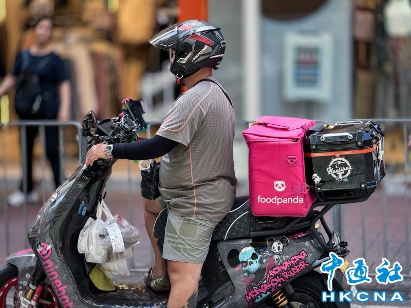 圖為途經旺角的foodpanda外賣配送員。香港中通社圖片