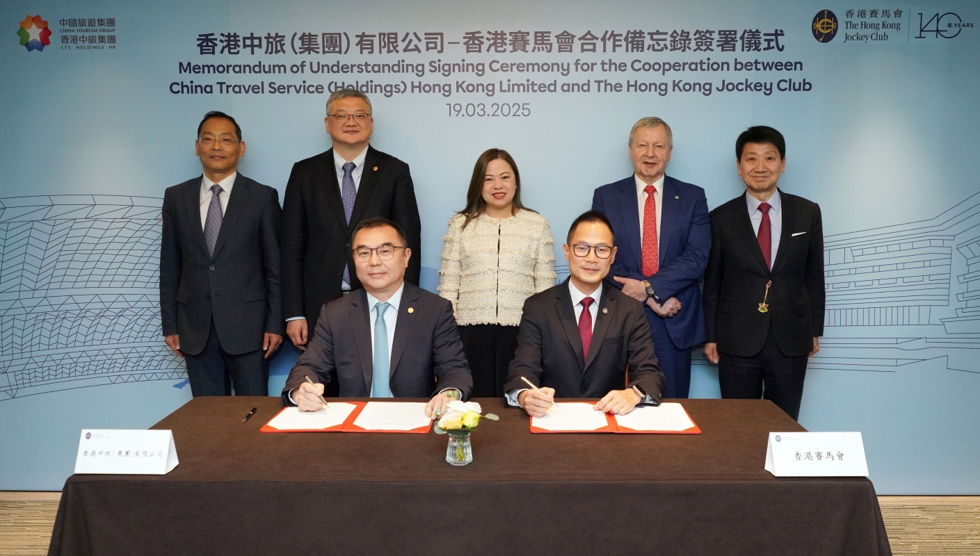 香港特別行政區政府文化體育及旅遊局局長羅淑佩、中聯辦經濟部副部長郭韶偉、香港旅遊發展局主席彭耀佳等嘉賓,在香港賽馬會行政總裁應家柏、香港中旅(集團)有限公司董事長王海民的陪同下出席了簽約儀式,共同見證了香港賽馬會客戶策略、體驗及創新事務執行總監侯德洋與香港中旅(集團)有限公司副總經理簡易代表雙方簽署合作備忘錄。