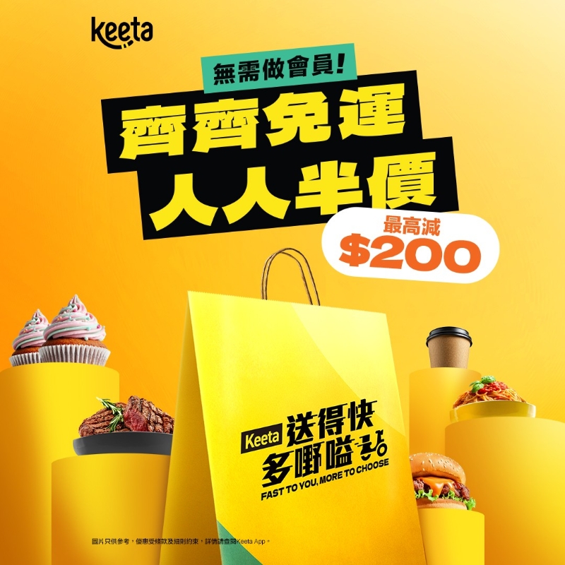 香港新聞網3月22日電 美團旗下外賣平台Keeta推出新優惠“人人半價 齊齊免運”,無須做會員,人人可享指定餐廳免運費,外賣送遞訂單金額達200、300港元後可獲半價折扣,輸入優惠碼【KT200】,至多扣減高達200港元。
