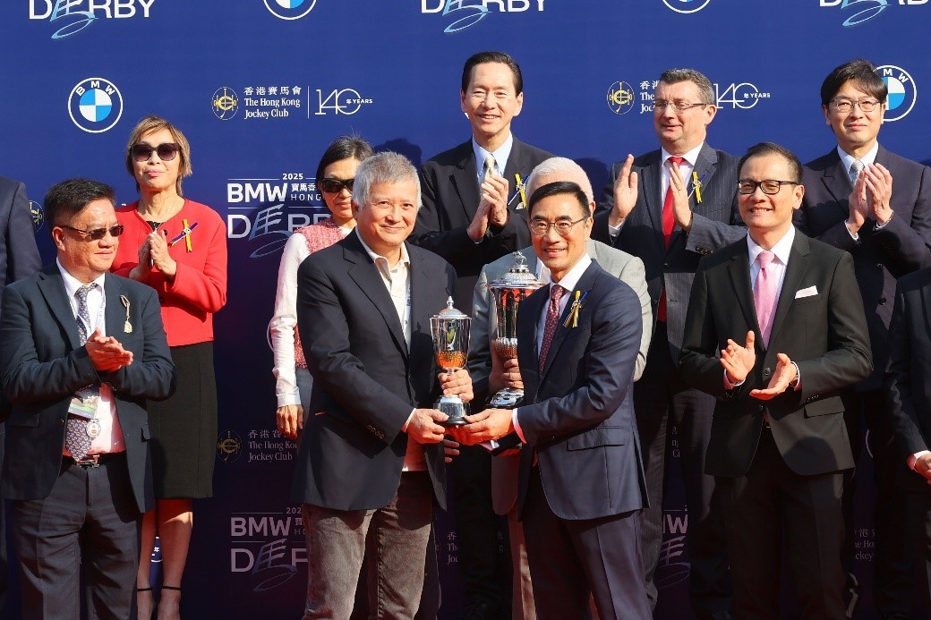 擁有超過150年曆史的香港打吡大賽,備受馬主、練馬師及騎師高度視。賽事安排於今天第七場上演,結果由呂健威訓練、韋紀力策騎的 “百賀飛駒” 憑藉其卓越的臨場表演,脫穎而出勇奪冠軍,成為馬壇矚目的新星。賽後, “百賀飛駒” 團隊獲馬會主席利子厚頒發獎杯,他們隨後乘坐開篷跑車在草地跑道上巡游,接受馬迷祝賀。(完)