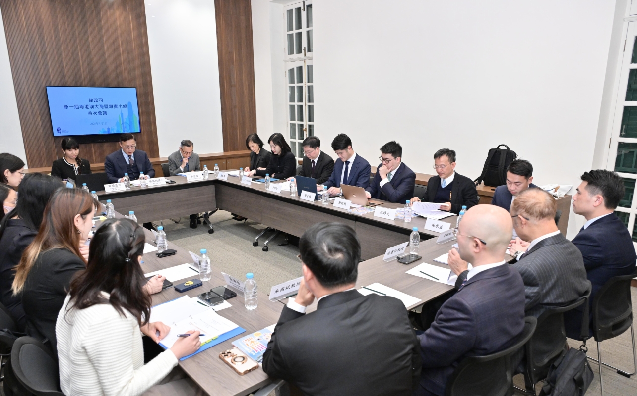 會上,小組深入討論律政司《粵港澳大灣區法治建設行動綱領》各項政策措施的新進展及未來工作重點,包括制定大灣區仲裁員名冊,進一步便利三地仲裁員在大灣區提供法律與爭議解決服務;及建立大灣區法律資訊平台,為企業及市民就跨境營商及生活提供實用的法律資訊。