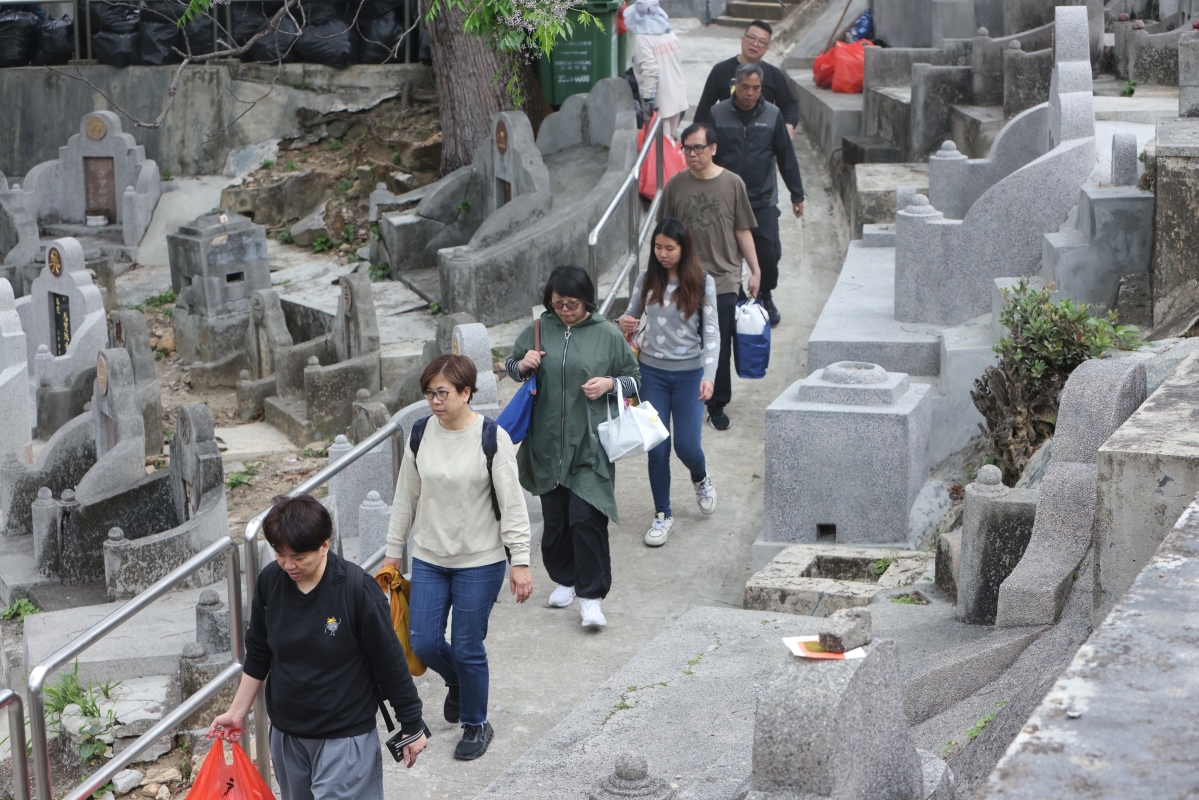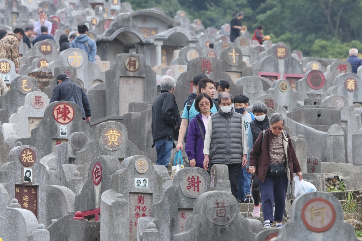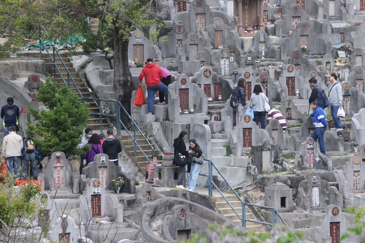 香港鑽石山墳場,不少市民扶老攜幼來到先人墓地進行祭拜(謝光磊攝)