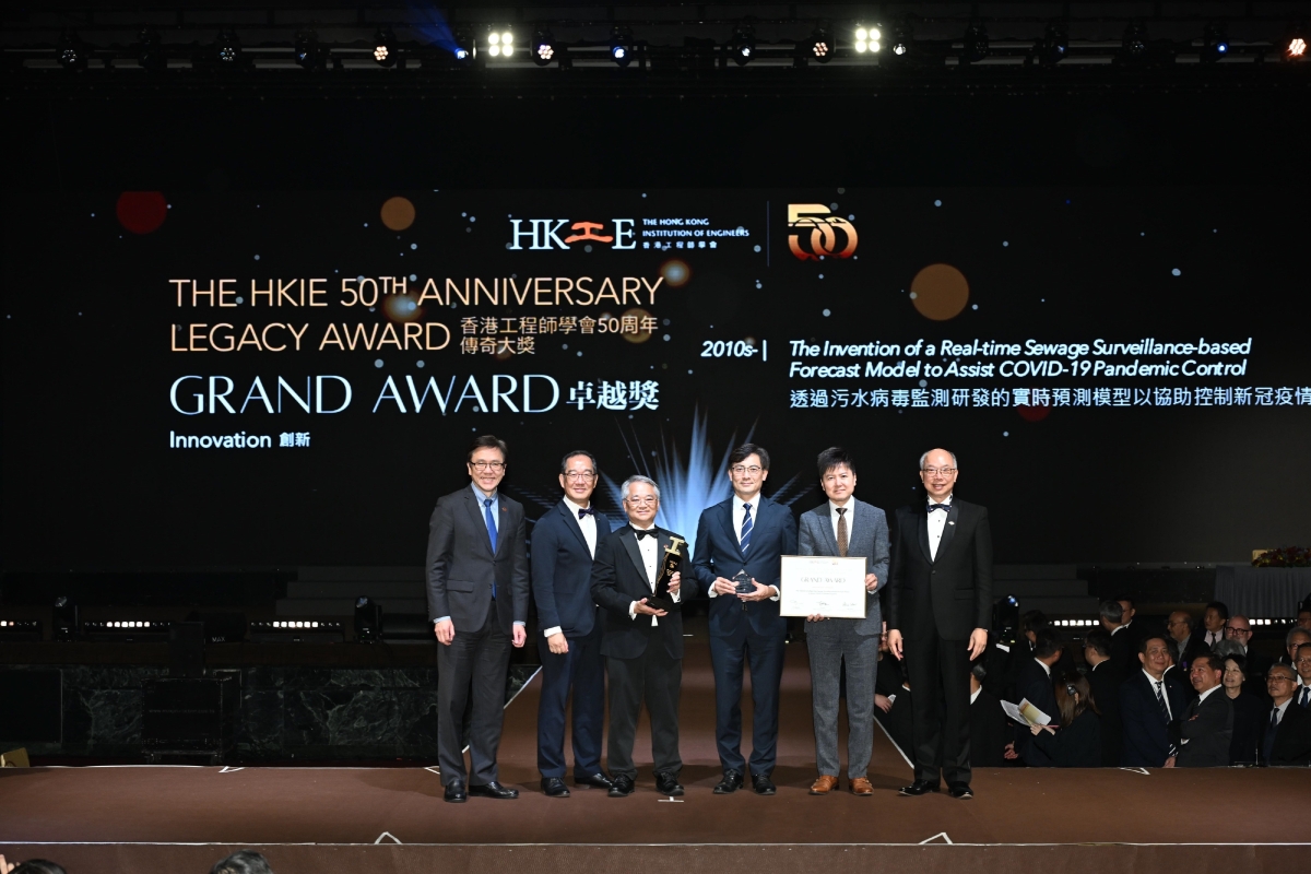 香港工程師學會為慶祝成立50周年,特設“傳奇大獎”,分為創新、工業和基建三大類別,表彰過去半世紀對香港及全球工程領域、行業及社會帶來深遠裨益的傑出工程項目及技術。全港性污水病毒監測計劃憑藉其具前瞻性的技術應用、跨領域協作及社會效益,從超過100個獲提名項目中脫穎而出,成為19個得獎單位之一,獲頒創新組別的卓越獎。評審委員會高度肯定該計劃以創新科技助力疫情防控,展現香港工程界的專業與創意。