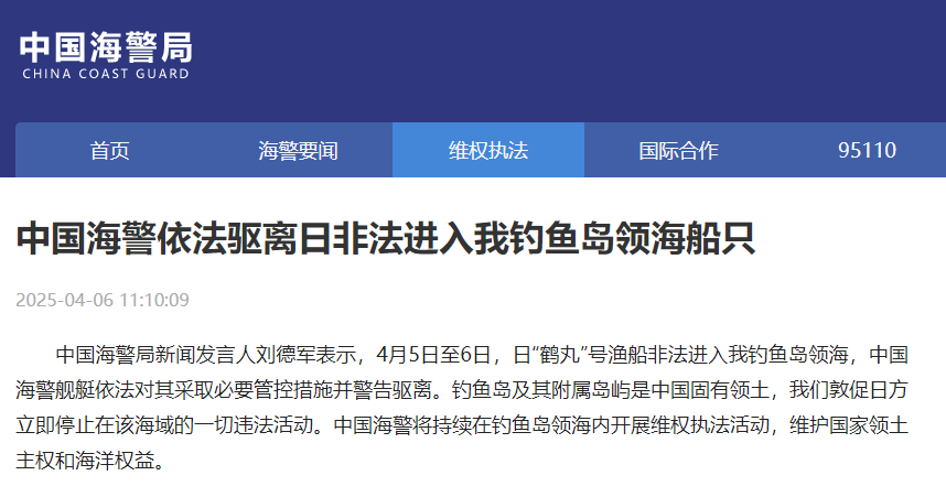 香港新聞網4月6日電 據中國海警局網站消息,中國海警局新聞發言人劉德軍表示,4月5日至6日,日“鶴丸”號漁船非法進入我釣魚島領海,中國海警艦艇依法對其采取必要管控措施并警告驅離。釣魚島及其附屬島嶼是中國固有領土,我們敦促日方立即停止在該海域的一切違法活動。中國海警將持續在釣魚島領海內開展維權執法活動,維護國家領土主權和海洋權益。(完)