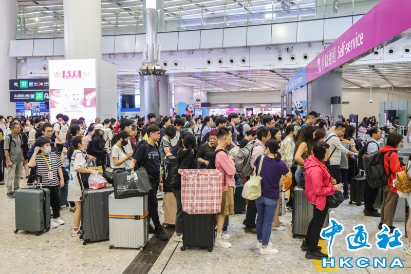 4月17日,香港西九龍高鐵站,大批港人北上。香港中通社圖片