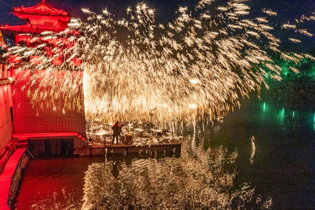 圖為河南開封清明上河園景區打鐵花表演。新華社資料圖