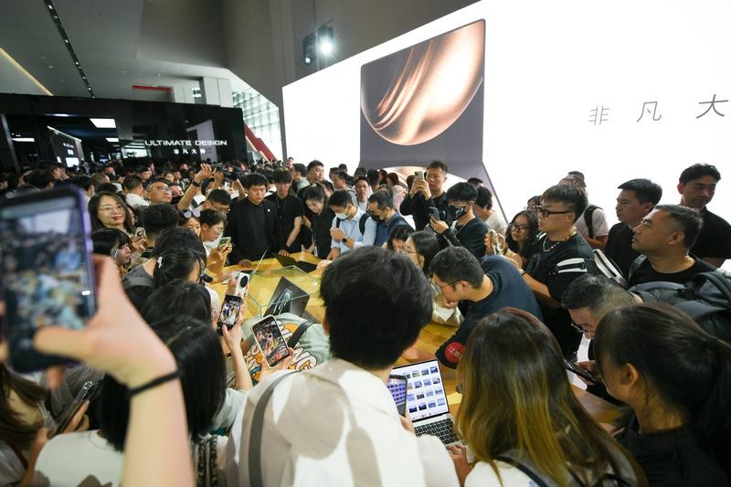 5月19日,消費者在發佈會後體驗鴻矇電腦。圖片來源:新華社