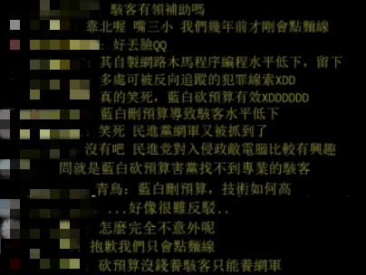 對於此次網絡攻擊被揭穿一事,台灣網友在社交媒體上展開了激烈的討論。在島內知名論壇PTT上,有網友直言實在“太丟臉”;還有網友自嘲台灣網絡技術落後,調侃“我們前幾年才剛會點麵線”;更有不少網友將矛頭直接指向民進黨當局,認為“數位部”的預算都打了水漂,并進一步嘲諷道:“問就是藍白砍預算,害民進黨找不到專業黑客。”