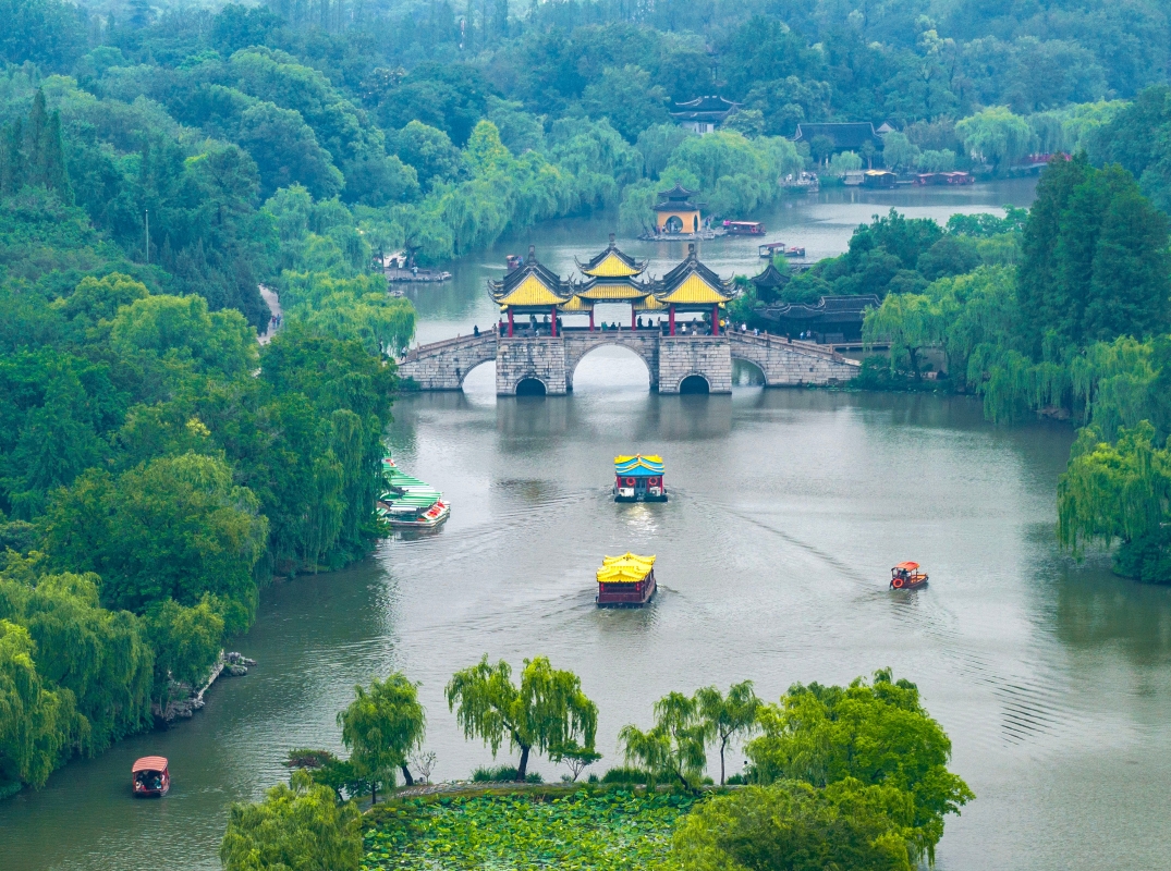 圖為遊客在江蘇揚州瘦西湖風景區賞景遊玩。圖片來源:新華社