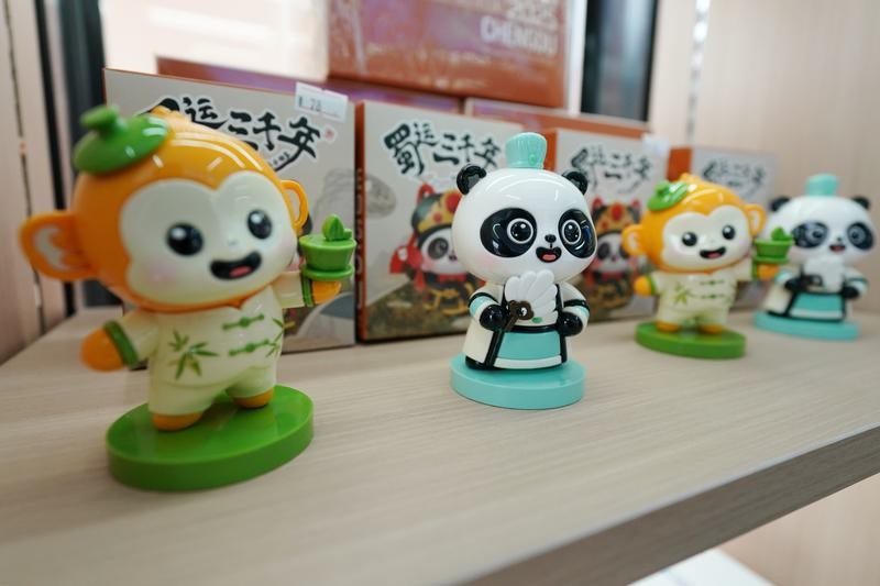 資料圖:成都世運會官方特許商品零售店“北京首店”拍攝的蜀運三千年系列商品。圖片來源:新華社