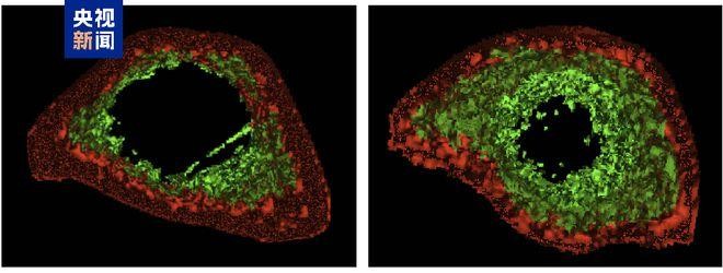 SRC 治療有效逆轉老年猴骨質疏鬆:對照組(左)、SRC 處理組(右)(圖源:央視新聞)