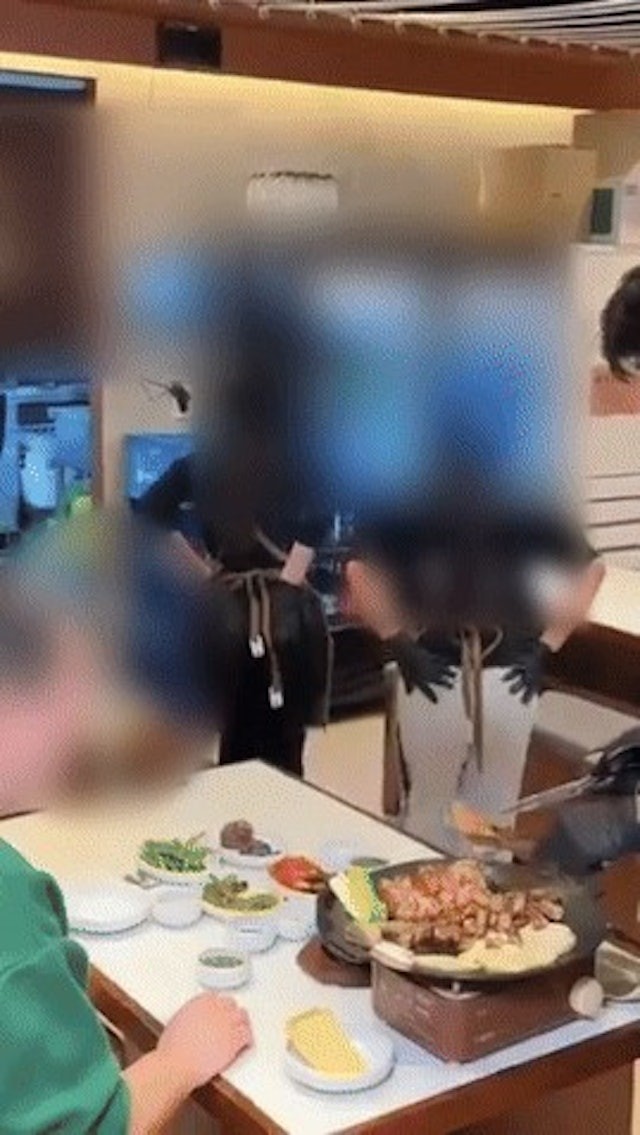 香港新聞網6月23日電 韓媒《KOREA WAVE》23日報道,韓國首爾一家烤肉店近日因女店員在客人面前跳舞吸引顧客,引發網友激辯。影片中,兩名身穿圍裙的女員工在座位間扭動腰部與肩膀,模仿近日在社群平台流行的“Terminal Dance”,吸引大量網友熱烈討論。