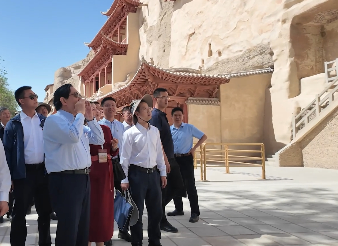 香港新聞網6月26日電(記者 周文菁 鄭竣凱)台灣當局前領導人、中國國民黨前主席馬英九率台灣青年學子第四次訪問大陸,26日在敦煌參訪莫高窟。台灣青年學生表示,參觀莫高窟令人興奮,站在壁畫前,“感覺自己拿到了通往過去的鑰匙”。