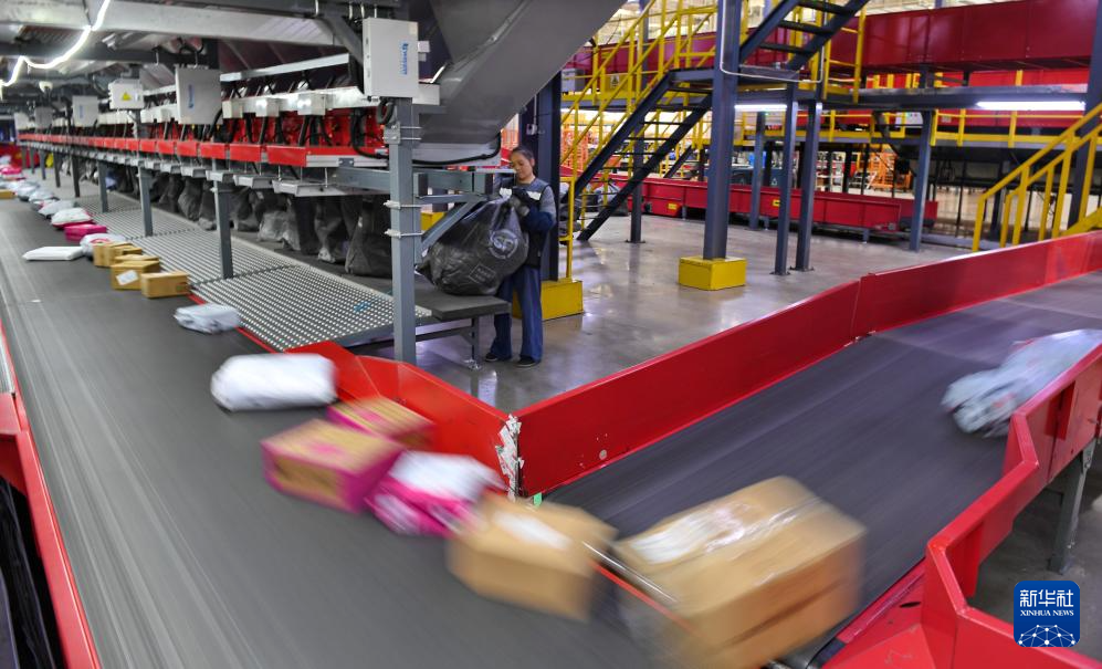 圖為在四川成都順豐長興中轉場,工作人員在智能快遞流水線上分揀快遞包裹。新華社資料圖