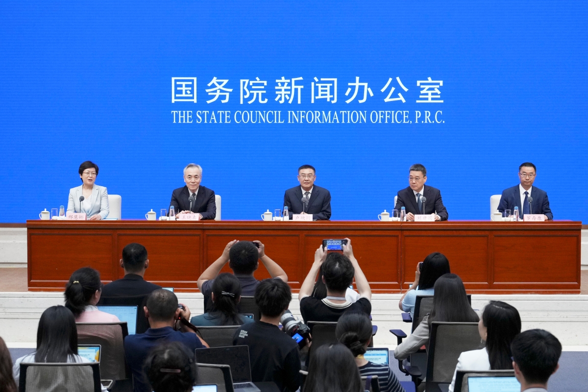 7月3日,國新辦舉行新聞發布會介紹抗戰勝利80周年主題展覽等情況。圖片來源:新華社