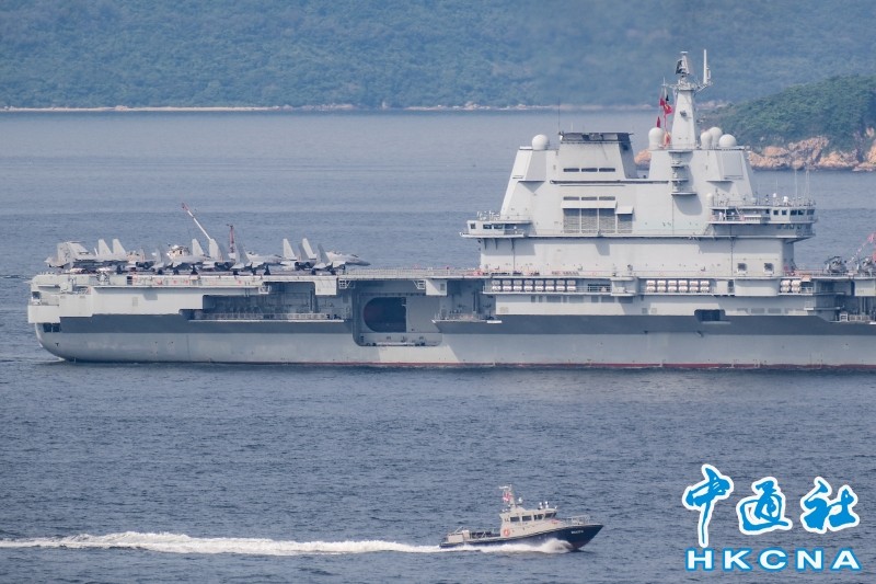 7月3日上午,山東艦航母編隊抵達香港。(香港中通社記者許其皓攝) 香港中通社圖片