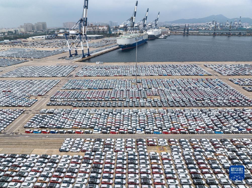 圖為在山東港口煙台港汽車碼頭,大批出口商品車等待裝船發運。新華社資料圖
