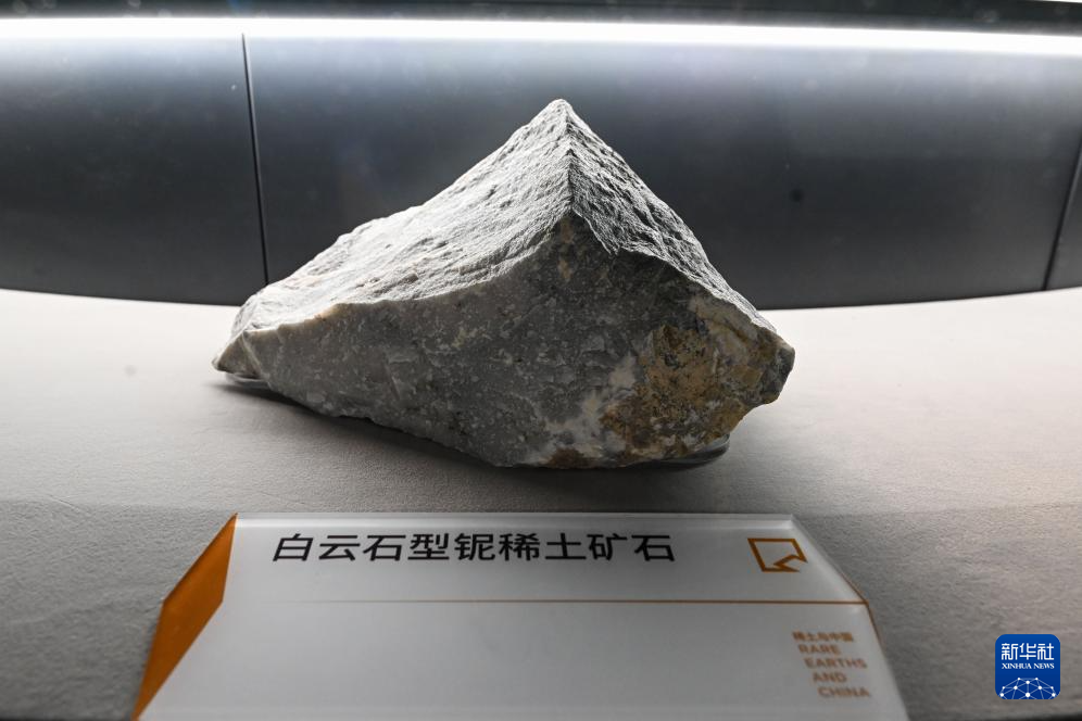 資料圖:這是在中國包頭稀土博物館拍攝的一塊稀土礦石。圖源:新華社