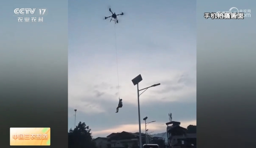 圖為無人機在運送物資(圖源:央視)