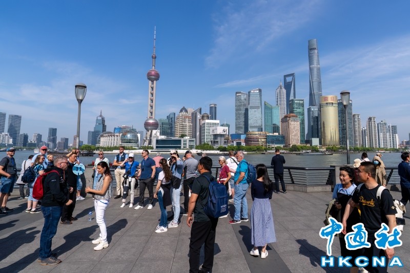 圖為在上海外灘遊覽的外國遊客。(蔡志東 攝) 香港中通社圖片