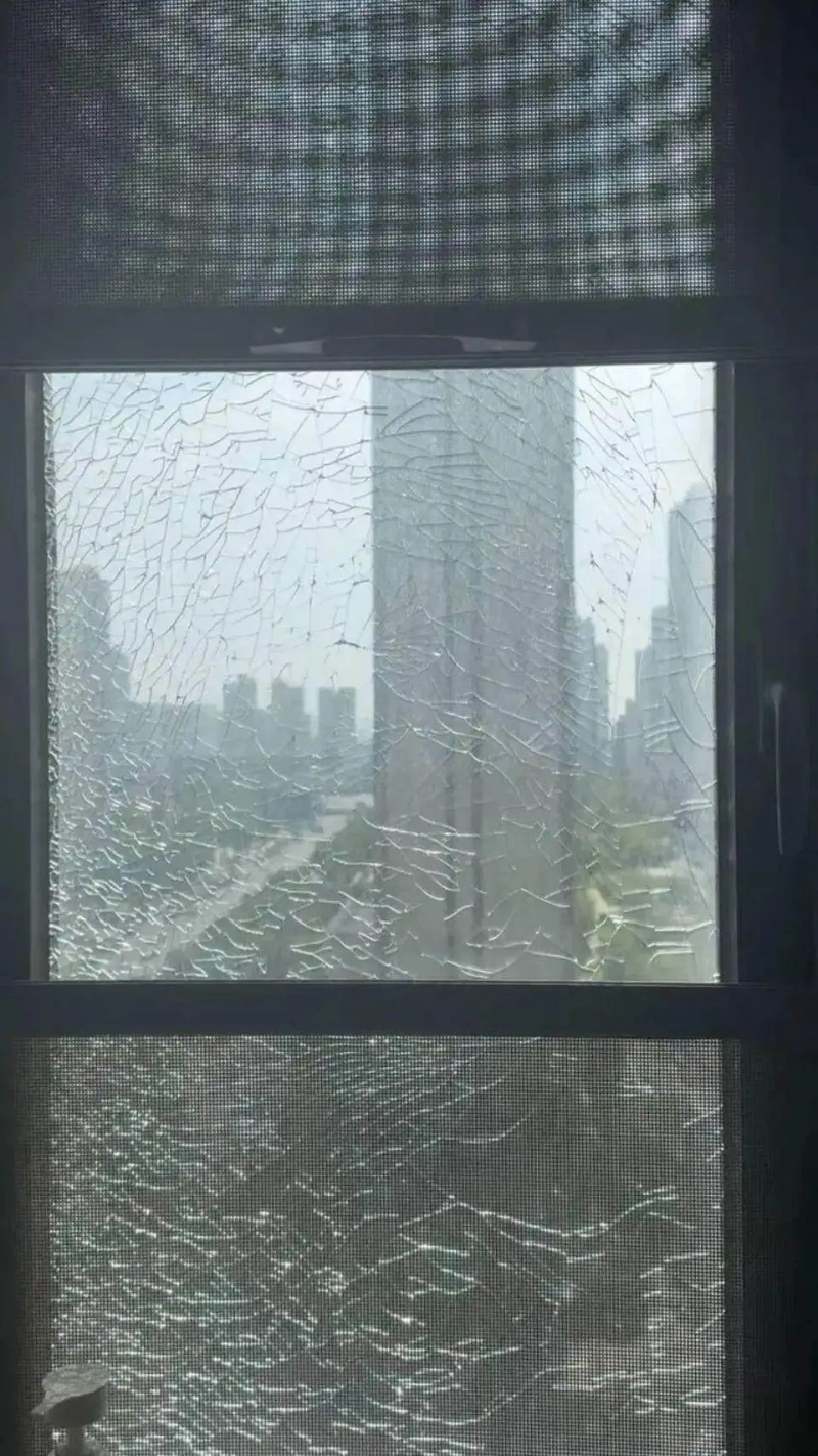 7月15日上午鄭州田先生家的玻璃裂開了(圖據受訪者)