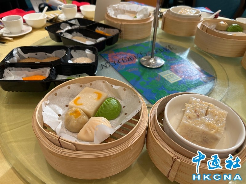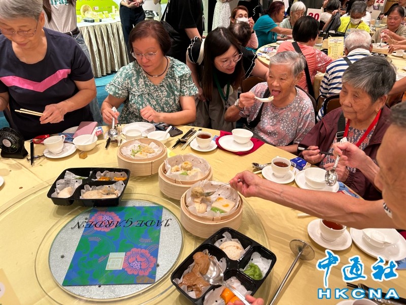 22日,香港美心集團推出專為吞嚥困難人士而製的“軟心膳”堂食服務,邀請一眾長者品嘗。中通社記者在現場所見,餐點包括蝦餃、燒賣、雞肉鮮蝦菜餃及蘿蔔糕等中式點心,色香味及營養俱全。